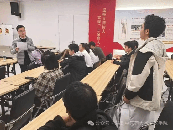 在分享尾声,同学们结合现实,或探讨AI时代中医药的发展方向,或立志学习前辈精神踏实前行,更多人则表达了愿为中医药事业贡献青春力量的共同心愿。在随后的点评环节,周贤老师充分肯定了同学们汇报形式的多样性与分享内容的思考深度,并在肯定之余进一步提出中肯建议,强调“读后重思、思而践行”的重要性。到了提问互动阶段,面对同学提出的“现代中医著作与传统经典如何选择”之问,周老师从多角度阐释“经典”内涵,引导大家理性选择、择优而读,为同学们指明了阅读方向的平衡之道。